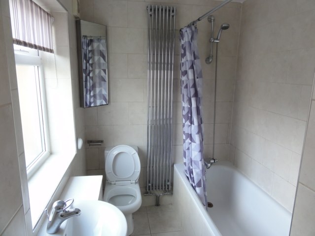 6’11 x 5’05 Bathroom with fully tiled walls, low level WC, rear aspect double glazed window, ceramic floor tiles, central heating radiator. Wash basin with mixer tap, central heating wall mounted radiator